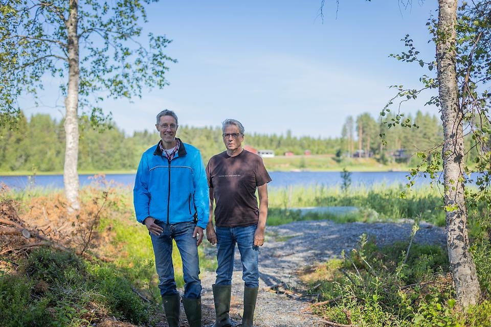 Erik Sundqvist och Lars Hammarsten, Hissjö By samfällighetsförening, på Byviksudden. Fotograf: Nathalie Näslund