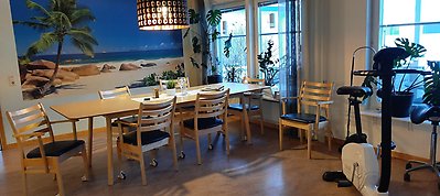 Vi i personalen lagar mat varje dag till de brukare som vill ha. Dofter av Korv Stroganoff och Lasagne är ett signum för boendet. Det skapar trivsel och är även vårt bidrag till det hållbara samhället. Rester kan vi spara och använda en annan dag. Några av brukarna hjälper till att duka och vi sorterar också det som ska återvinnas och går iväg med det tillsammans. Vardagssysslor som gör att vi känner oss nyttiga allihopa.