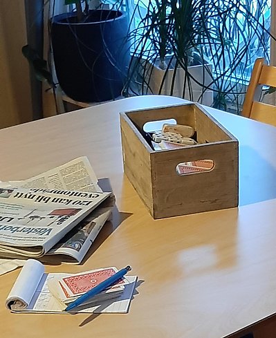 Jag får spela poker på arbetstid, inte helt fel. Vi åker också iväg och handlar nu och då. Kanske nån vill ha sin egen chipspåse, några flaskor Trocadero eller en nischad tidning. Nån åker iväg till stan själv eller med personal, besöker Vävenbiblioteket eller tar en kaffe på Pressbyrån vid Vasaplan. Det är individer som bor på boendet och de har olika behov så det gäller att vara lyhörd och närvarande som personal. Där avrundar jag och tackar för mig.