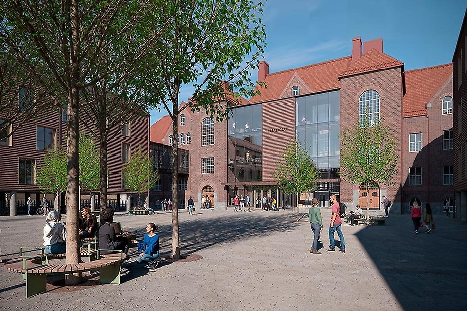 När Vasaskolan blir gymnasium får byggnaden två nya flyglar intill och en ny ljus och öppen entré. Flyglarna står på pelare för att skapa en öppen och trygg skolgård. Rosa huset som ligger bredvid skolan görs om till skolkök och skolrestaurang.