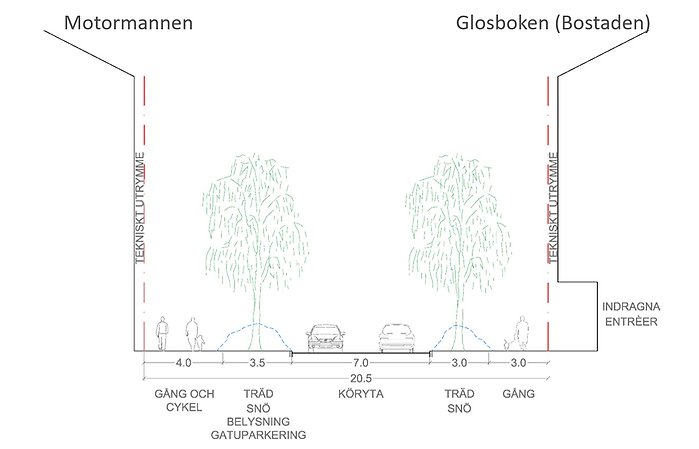 • Ny gång- och cykelbana anläggs på båda sidor av gatan.