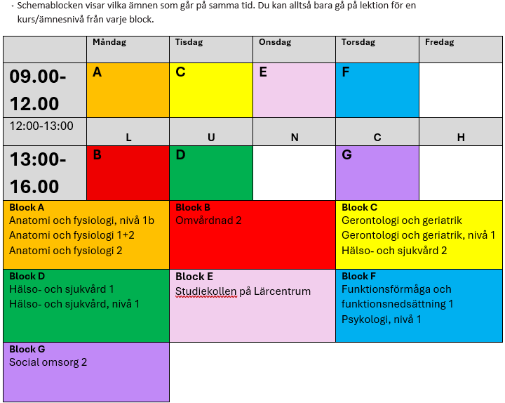 Olika kurser/ämnesnivåer har lektioner under olika tider, du ser det på bilden ovan, på denna länk: Schema