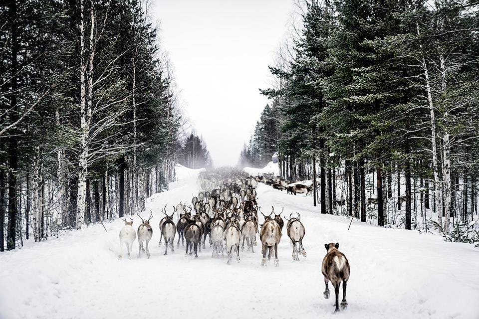 Changing grazing conditions, weather changes and predators make reindeer appear closer to the roads, even where you usually do not see them. Road salt and sand attract reindeer to the roads where they lick up the salt. Because reindeer are not aware of traffic, deep snow can cause them to use roads and snowmobile tracks where they can move more easily.
