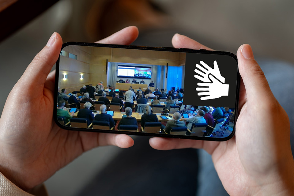 Kommunfullmäktiges januari-, februari- och junisammanträden teckenspråkstolkas. Du kan följa tolkningen från fullmäktigesalens läktare och i webbsändningen.