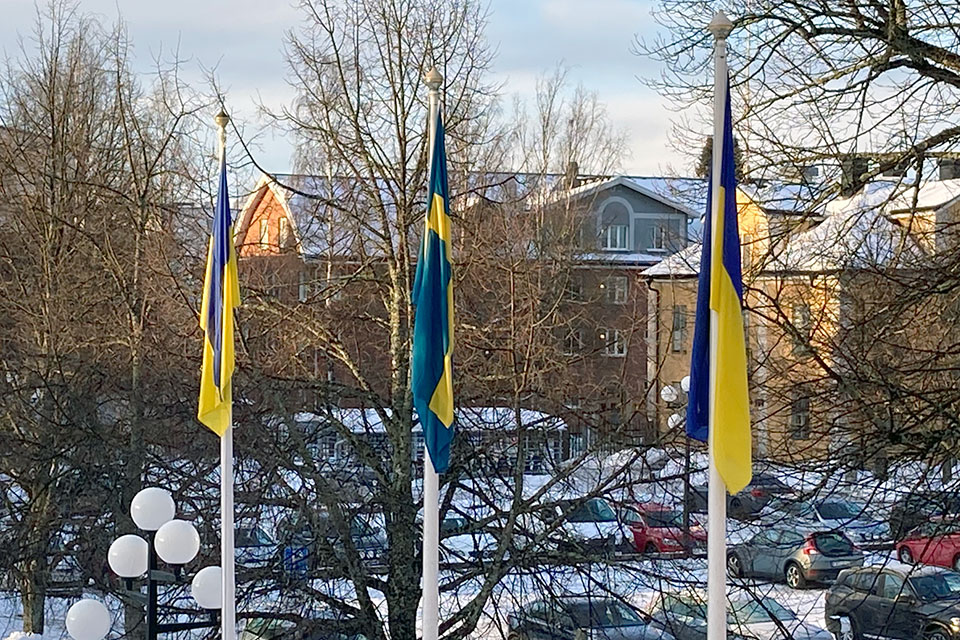 Fredag 25 februari hissade Umeå kommun Ukrainas flagga för att visa solidaritet med Ukraina och det ukrainska folket.