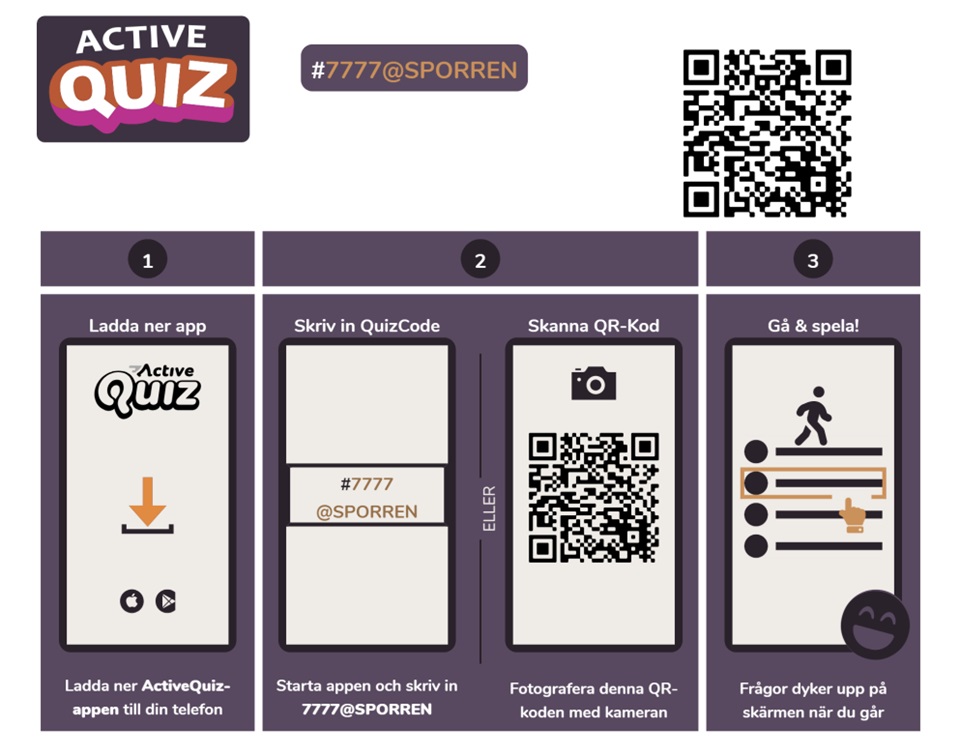 2. Starta din tipsrunda i Active Quiz med att ange SPORREN som Quizcode och tryck på gröna pilen för att komma till aktuellt Quiz. Eller gå via denna QR-kod direkt till månadens quiz.