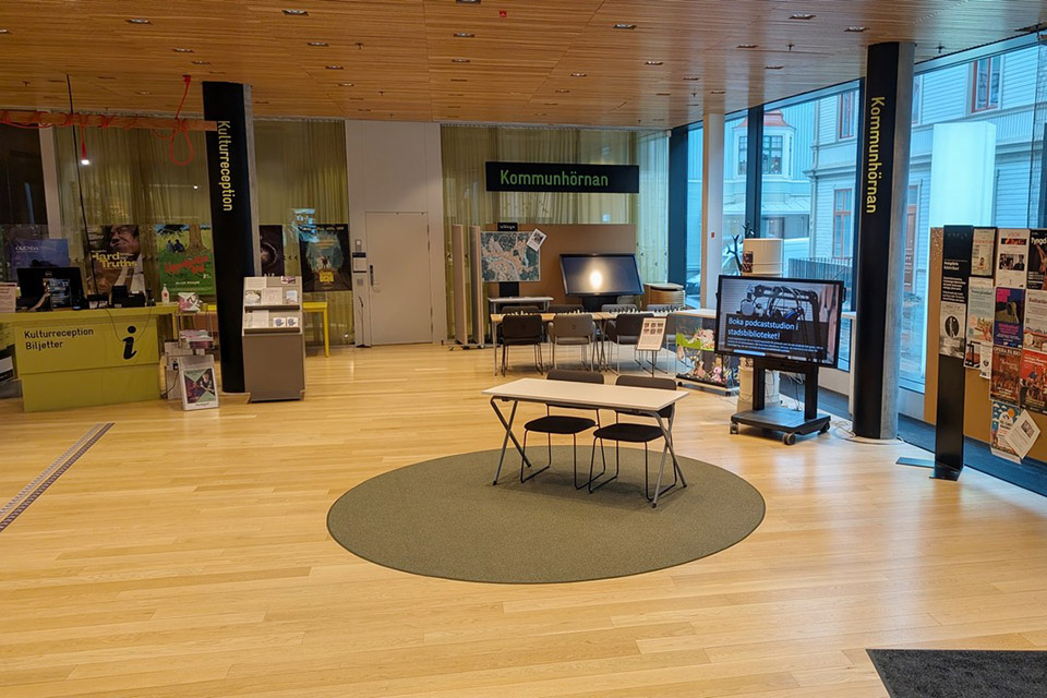 Ta chansen att sprida information om er verksamhet för allmänheten i Kommunhörnan på Väven. Den är gratis att använda och går att boka 1–14 dagar beroende på aktivitet och tillgänglighet.