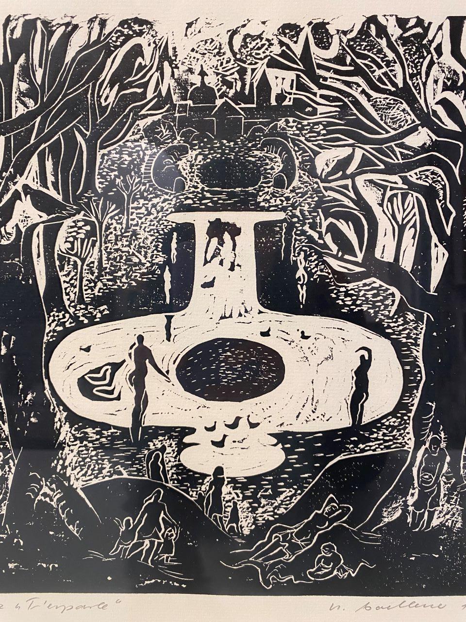 Tierpark (1972) linoleumsnitt, detalj av H Caellene